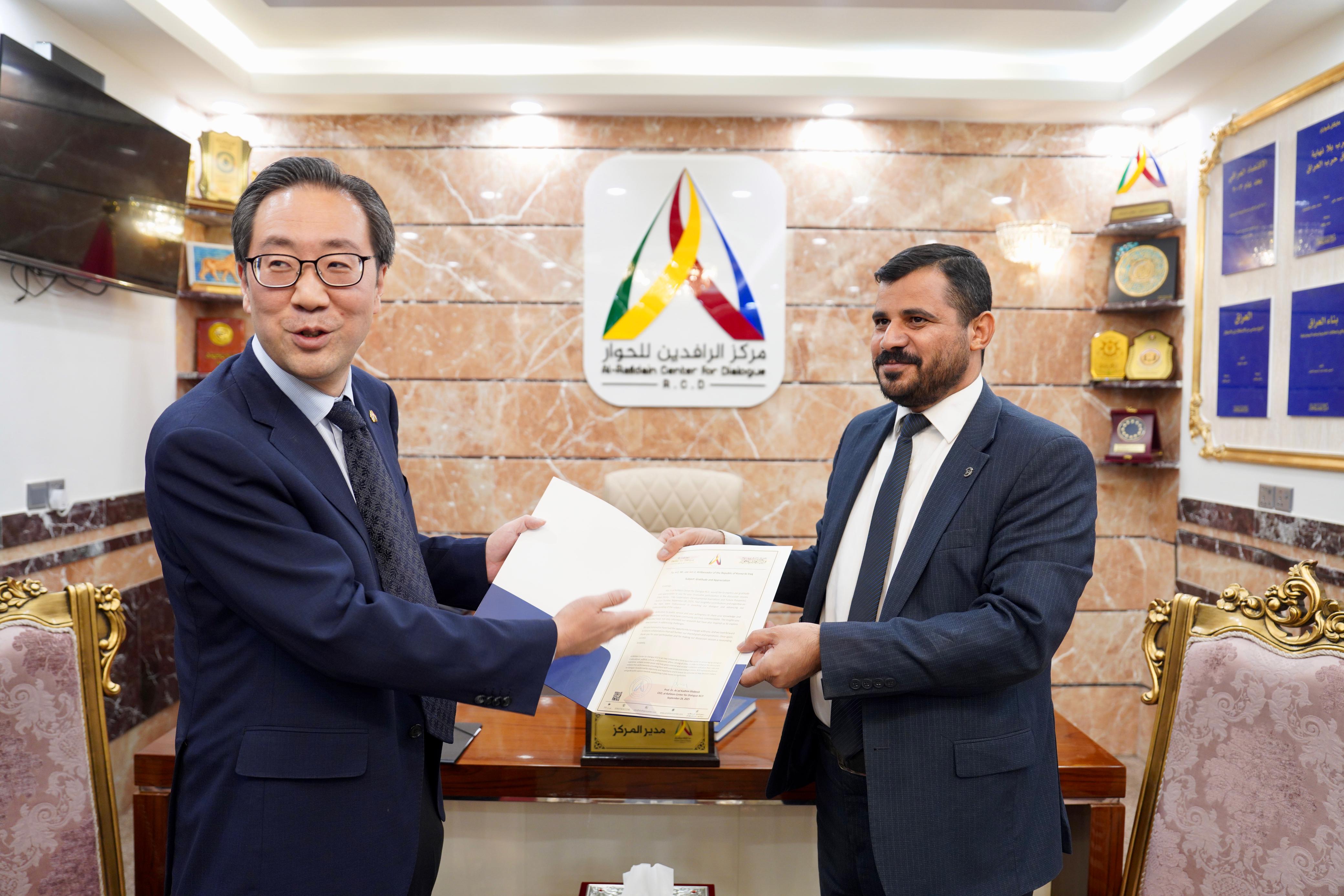 مركز الرافدين للحوار RCD يستضيف سفير كوريا الجنوبية لدى بغداد
