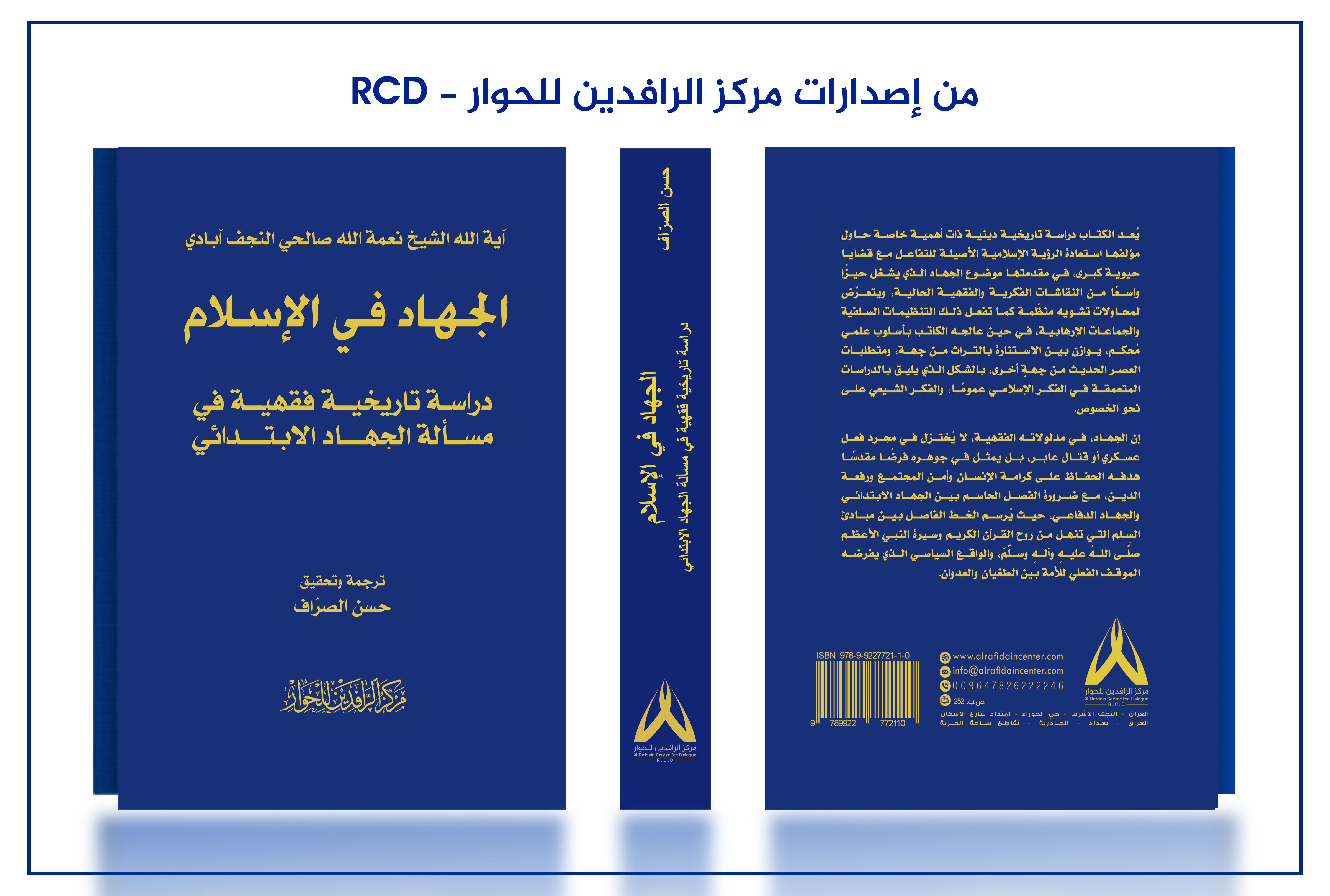 أصدر مركز الرافدين للحوار RCD كتابا جديدا بعنوان (الجهاد في الإسلام: دراسة تاريخية فقهية في مسألة الجهاد الابتدائي)، وهو من تقريرات سماحة العلّامة الشيخ محمد علي كوشا لدرس آية الله الشيخ نعمة الله صالحي النجف آبادي، بترجمة وتحقيق حسن الصرّاف.