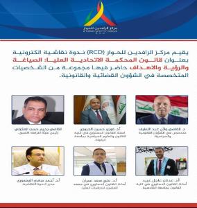 Al-Rafidain Center for Dialogue (RCD) held a virtual discussion session via ZOOM titled, "The Law of the Federal Supreme Court: Formulation, Vision, and Objectives." The event featured a group of judges, politicians, and university professors specializing in constitutional law.