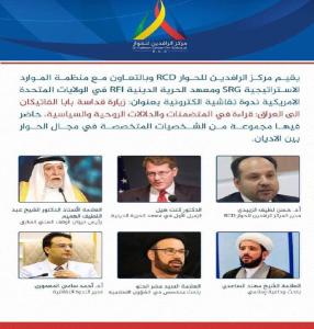 Al-Rafidain Center for Dialogue (RCD), in cooperation with the Strategic Resources Group (SRG) and the Religious Freedom Institute (RFI) in the United States, held a virtual discussion seminar on ZOOM titled, "The Visit of His Holiness the Pope of the Vatican to Iraq: A Reading of the Spiritual and Political Implications and Meanings." The event featured a group of specialists in interfaith dialogue, including: